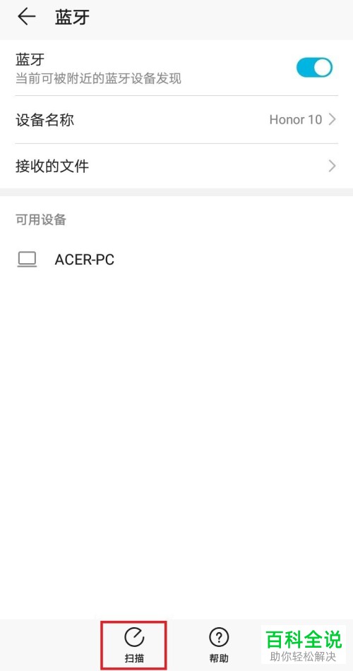 3. 我们选择比较方便的手机端连接电脑端,选择“扫描”在下方就会显示电脑的名称;选择我们的电脑名,进行配对