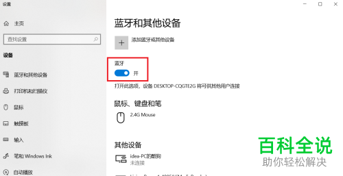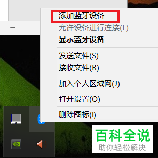2. 电脑右键单击蓝牙图标,在菜单里选择“添加蓝牙设备”,然后在蓝牙设置界面,确认一下是否打开了蓝牙;手机上长按蓝牙,也进入蓝牙设置界面,将蓝牙开关打开