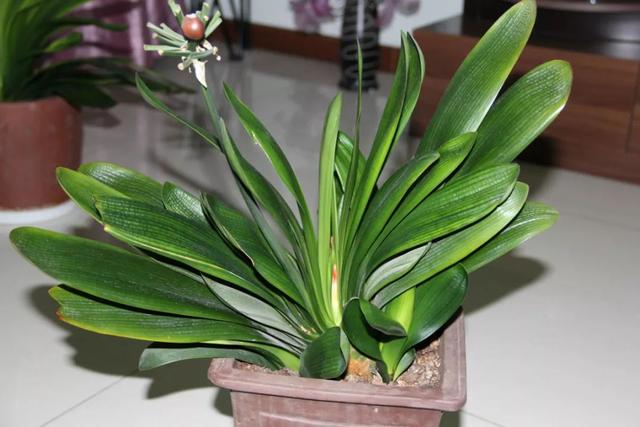 4、根长到了外面 能让君子兰的肉质根长到盆土的外面来,无外乎两种情况,一种就是盆土板结严重,根系在盆土里,闷得吃不消了,只能另找出路。还一种情况,就是长期浇半截水,其实也和盆土板结有关,板结的盆土,浇水是浇不透的,只能浸盆或者是慢慢地浇,而普通的浇水方式,最多只能浇透半层盆土。这样,君子兰的根茎就会去找水,然后长出了盆土之外。看到这样的情况,赶紧翻盆换土吧!