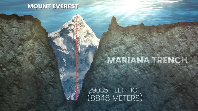 马里亚纳海沟深度大约为11公里,是地球上最深的海沟,海拔8848米的珠峰顷刻间就能被它吞噬,连个尖尖都冒不出来。