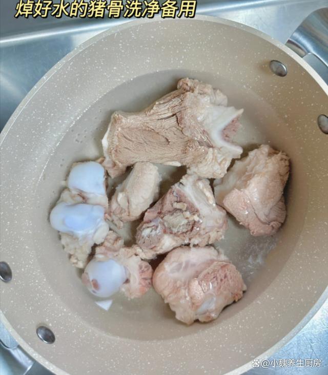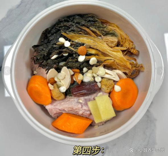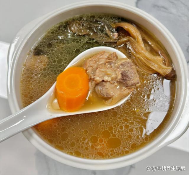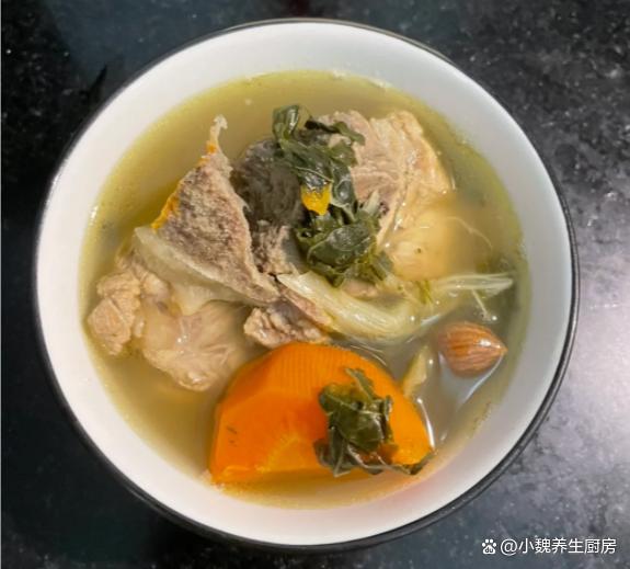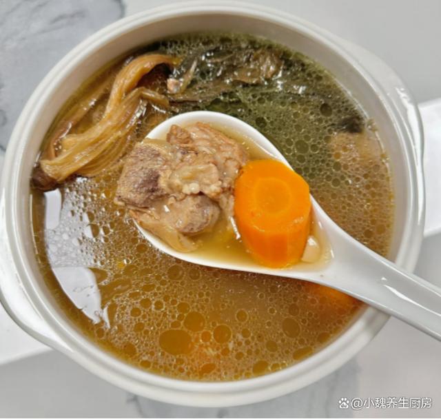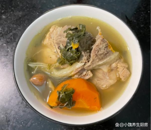 4:把猪骨块放入汤锅中,放入一些生姜片,记得加说漫过猪骨块,还要加上几勺料酒,调到大火炖煮几分钟,捞出冲洗掉一层浮沫即可,提前准备好煲汤的全部食材,开始制作这道菜干南北杏胡萝卜炖猪骨汤。 5:煲汤的锅洗干净,锅底放入筒子骨,梅干菜,胡萝卜,无花果和南北杏,建议加纯净水1200毫升,没有条件就直接用清水,纯净水煲汤更鲜甜一些。6:煲汤要掌握好火候,大火先煮至沸腾,调到小火慢慢炖,让猪骨的营养都融入汤里,汤汁变得浓郁,其他食材都煮到熟透了。7:煲汤不需要加太多调味料,只需要放胡椒粉和食盐即可,用汤勺搅动均匀,让汤汁入味,出锅开吃,这道菜干南北杏胡萝卜炖猪骨汤也太鲜美了。 菜干南北杏胡萝卜炖猪骨汤是一款巨好喝的鲜汤,深受许多南方人的喜爱,喝起来很甜美,补充营养,健脾和胃,赶跑体内的湿气,好处多多。 (www.ws46.Com) 小伙伴们,你们喜欢喝这款菜干南北杏胡萝卜炖猪骨汤吗?(文中的配图均出自网络)