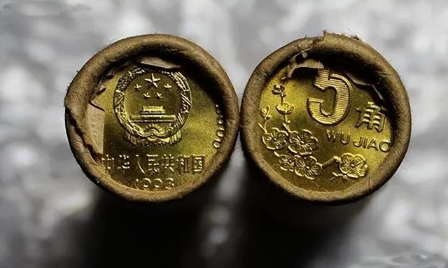 相比于使用大家更喜爱的是收藏保存几枚,如今它虽然没有退出流通,但所有年份都不再是面值了,其中最珍贵的就是1993年的梅花5角,这种旧硬币单都已经要20多了,如果是整卷和整盒的,那么这个年份会更加夸张。