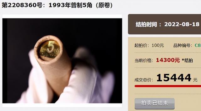 在去年的8月就有一卷93年的梅花5角,就以15444成交,一卷梅花5角的数量是50枚,折算下来的话单枚甚至超过了300,而更珍贵的自然是整盒的,在去年同期1993年的整盒梅花5角,市价也达到了120000。www.ws46.com