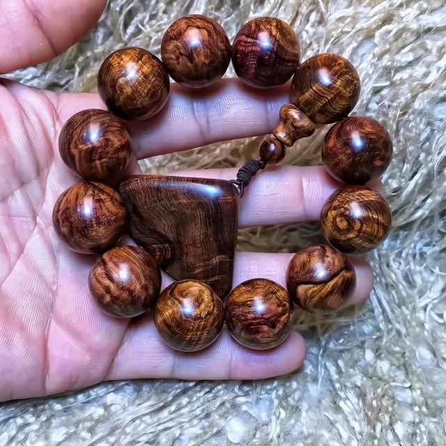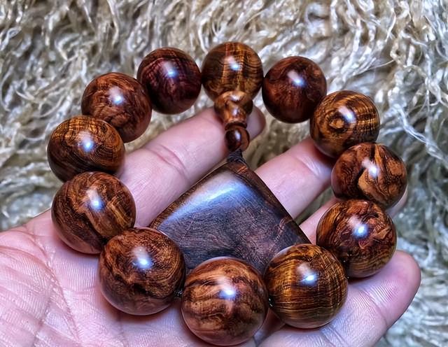 第二点材质的优越性,材质的优越性也分几点来分析。 第1料质细腻,通过打磨海南黄花梨就可以达到咱们说的婴儿肌肤,或者琥珀的质感,这是其它材质没法比的,这需要木质的纤维结构足够细腻才可以达到,咱们现在看到很多木串,不管是金丝楠或者崖柏,或者血龙木荧光感可能也非常好,但其实都是通过打蜡或者上胶水打磨来完成的。