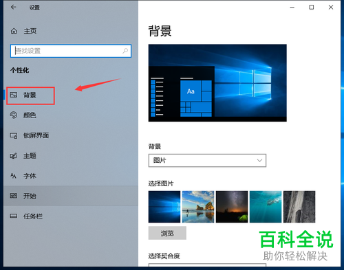 4. 之后在个性化设置中,我们不难找到如图所示的“背景”一栏,我们点击进入,