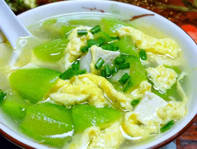 制作步骤: 材料处理:冬瓜去皮去籽,切成大块;薏米提前浸泡1小时;老鸭清洗干净,剁成块状。 老鸭去腥:锅中加入清水,放入老鸭块和姜片,加入适量的料酒,大火烧开后撇去浮沫,继续煮5分钟,捞出老鸭块冲洗干净。 开始炖煮:取一个砂锅,加入足够的清水,放入老鸭块、薏米、姜片,大火烧开后转小火,慢慢炖煮1小时。 加入冬瓜:当薏米煮得软糯,老鸭汤变得浓郁时,加入冬瓜块,继续炖煮30分钟。 调味出锅:根据个人口味加入适量的盐调味,继续炖煮5分钟,让汤品更加入味。关火后即可出锅享用。 三、丝瓜鸡蛋汤