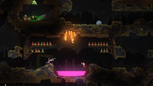 《noita》 这是一款2D横版类动作游戏,游戏中每个像素都有物理模拟,你也可以创造自己的法术,别看这款游戏是2D的,里面各种玩法非常多样了。 但新手教程偏偏做得相当敷衍,开局把你丢进一个山洞里,你手上有两把魔杖,然后就没了,接下来就需要你自己去探索了,而游戏的很多信息埋藏都比较深,我从未见过一个游戏可以藏这么深的,好玩确实好玩,可以说是我见过玩法最多样的游戏之一了,建议你不看教程,自己摸索才有意思。
