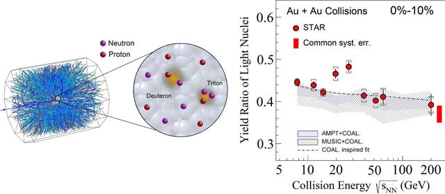 STAR实验发现,在碰撞能量从7.7到200 GeV变化时,氚核的产额和比率都随着中心度和横动量的增加而减小。这说明,在更密集和更热的碰撞中,中子密度波动更小,氚核更难形成。另外,STAR实验还发现,在19.6和27 GeV的能量下,最中心的碰撞中,氚核的比率有明显的增强现象,超出了理论预测的范围。这个增强现象可能是由于在这个能量区间内,QGP处于一个临界点附近,物质发生了相变和临界波动,导致了中子密度波动的增大。这个结果为探索QGP的相图和临界点提供了重要的线索。 总之,STAR实验利用重离子对撞机上的金-金碰撞,研究了氚核的产生情况,并发现了一些有趣的现象。这些现象可以帮助我们理解核聚变和QGP的物理机制,并为未来的能源开发和基础科学提供新的视角。