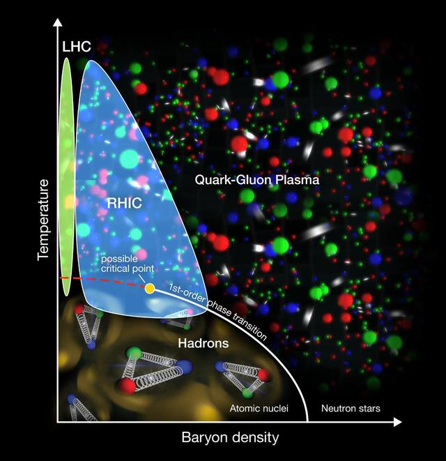 为了探索核聚变的可能性和条件,科学家们在世界各地建造了不同类型的实验装置,其中一种叫做托卡马克,它是一种环形的装置,利用强磁场将等离子体约束在中心区域。在托卡马克中,科学家们可以通过加热和压缩等离子体,使其达到足够高的温度和密度,从而引发核聚变反应。 除了托卡马克之外,还有一种实验装置叫做重离子对撞机,它是一种圆形的加速器,可以将重原子(如金)的原子核加速到接近光速,并在四个交点处相互碰撞。在这些碰撞中,原子核被撕裂成许多小碎片,并产生极端的温度和密度,从而形成一种类似于宇宙早期状态的物质,叫做夸克-胶子等离子体(QGP)。在QGP中,夸克和胶子不再被束缚在原子核内,而是自由地流动和相互作用。科学家们希望通过研究QGP的性质和演化,揭示物质的基本结构和规律。