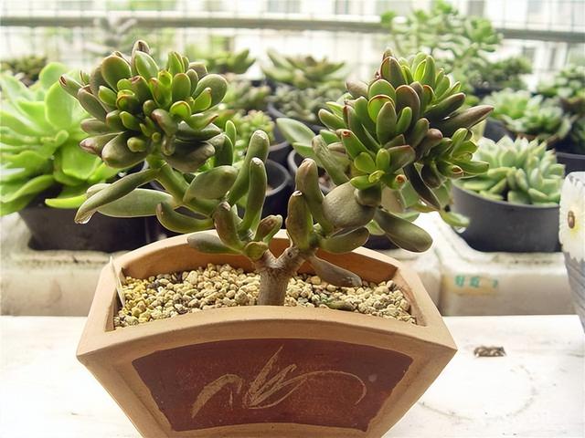 9、吸财树 一款非常漂亮的多肉植物,如果当成盆景养在室内,更加增加一些格调,通常都喜欢把它养在客厅的茶几、窗台上,作为一种小型的绿植盆景,很受推崇。 吸财树,顾名思义,寓意着财源滚滚,但它还有长寿的寓意,而且养殖简单,属于是懒人花卉,基本上不需要去管,就能生长得很好。