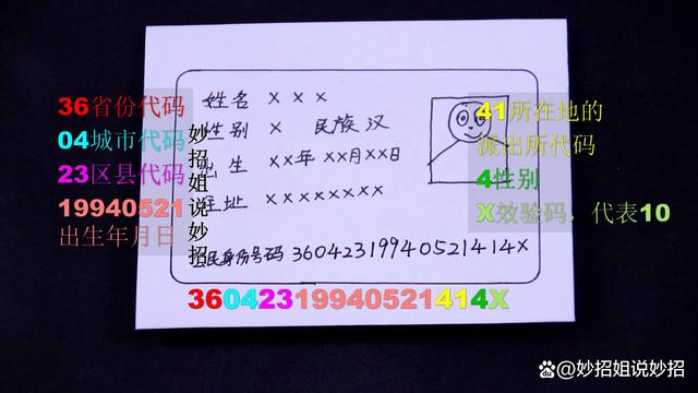 一、身份证的18位数字分别代表什么。 身份证号码是由18位数字组成的独特标识,每一位数字都有着特定的含义。前六位代表着省份、城市和区县代码,让我们能够迅速确定一个人的籍贯所在地。7到14位则是出生年月日,清晰地记录了每个人的出生日期。15和16位是所在地派出所的代码,进一步明确了身份的归属。第17位代表性别,奇数为男性,偶数为女性。即0、2、4、6、8为女;1、3、5、7、9为男。而最后一位则是校验码,它的存在确保了身份证号码的准确性和唯一性。 在大多数情况下,身份证尾号是0到9的数字之一。但有时候,我们会看到一些人的身份证尾号是一个“X”。这个“X”与其他数字不同,它并不是随意出现的,而是有着特殊的意义。