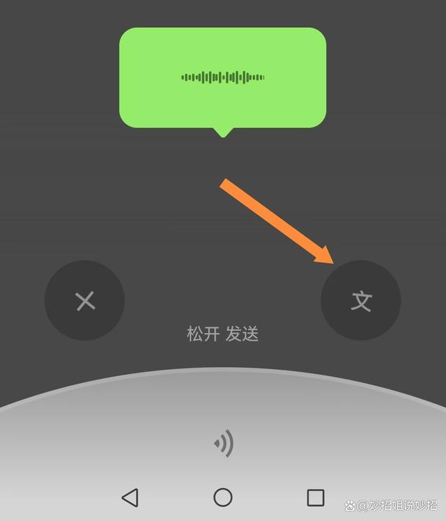 当我们将需要说的话都说完后,不要直接发送,而是将说好的语音往右上角滑动。在右上角就有一个“文”字,它就可以将我们输入的语音自动转化成文字,如果转化的文字有误的话,还可以编辑,改正。确认无误后,我们选择“√”号,这样输入的语音就自动转化成了文字发送给对方了,非常的快速。