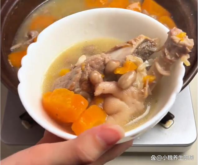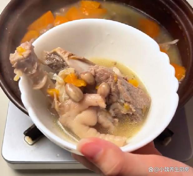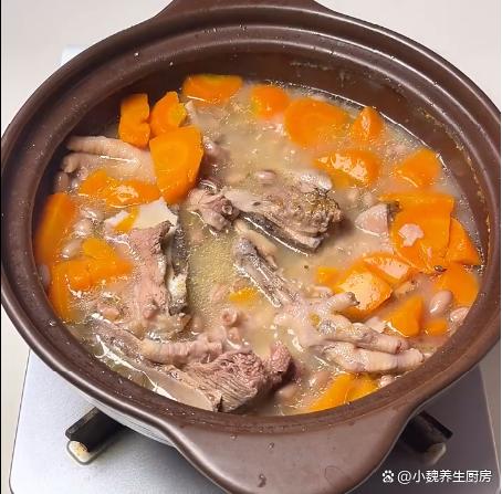 第五:准备好煲汤的砂锅,锅里放入焯水好的鸡脚和猪骨,放入花生,胡萝卜,姜片和五指毛桃,记得一次性多加一些水,全部漫过食材。 第六:转到中小火炖煮,让汤汁特别浓郁,猪骨和鸡脚都煮至熟透,加上半勺胡椒粉和食盐,用汤勺搅拌均匀,让汤品入味,出锅开吃了。 来源: www.ws46.com 五指毛桃猪骨鸡脚汤是一款广东人爱喝的靓汤,选用猪骨,鸡脚,胡萝卜和五指毛桃等食材,每周给家里人炖一锅,充分发挥食材的营养,汤品鲜美浓郁,好喝不油腻,滋补润肺,祛湿效果也不错,对身体有许多好处,聪明人经常喝它。 小伙伴们,你们是否掌握这款五指毛桃猪骨鸡脚汤的详细做法吗?你们夏季喜欢喝什么汤呢?(本文的配图均出自网络)