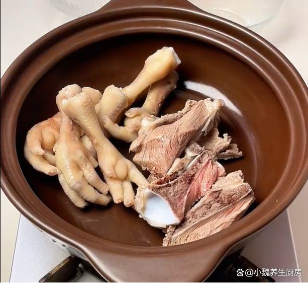 正确制作过程:第一:提前选购好五指毛桃,猪骨,鸡脚,花生和胡萝卜等食材,先把胡萝卜彻底洗干净,去皮后切成滚刀块,放在一边备用。第二:五指毛桃用清水洗净,猪骨提前剁成块,用冷水浸泡出血水,猪骨放入汤锅中,加上一些葱段和姜片,调入一些料酒,加上少许料酒来去腥,炖煮3分钟左右,猪骨没有血腥味。第三:将鸡脚提前处理好,洗净后也丢入锅中,同样加入葱姜和料酒,把鸡脚焯水一会儿,用温水冲洗掉浮沫。第四:生姜切成薄片,花生用冷水泡发好,准备好焯水好的猪骨和鸡脚,花生和五指毛桃,开始制作这款五指毛桃猪骨鸡脚汤。