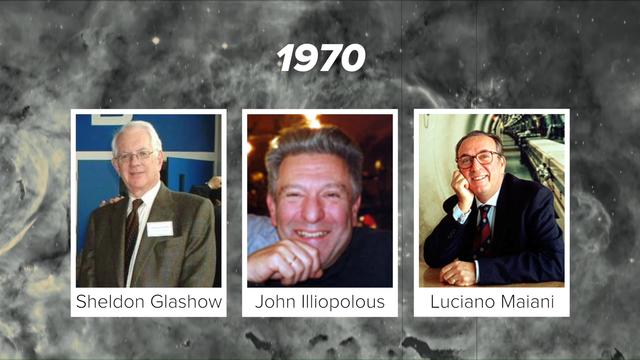 前面说过顶夸克发射Z玻色子并保持其味道是可以的,这对所有其他粒子也是如此。但是对于像顶夸克发射Z玻色子并变成粲夸克这样的情况,好像也没有违反什么定律,这似乎是可能的。 科学家们为此起了个名字,称之为味道改变中性流(FCNC),因为粒子身份改变了但电荷不变。 那么FCNC是否被观察到?并没有,1970年,Sheldon Glashow、John Illiopolous和Luciano Maiani 能够证明,如果夸克成对出现(一个电荷为 2/3,另一个电荷为-1/3),味道改变中性流是被禁止的。