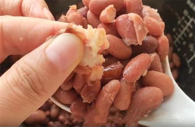 4.这个是用电饭锅的煮饭键,煮了1个小时左右的红芸豆,把水分收干豆子即可软烂。这个豆子我们可以一次多煮一些,然后放冰箱冷冻保存,这样用的时候特别方便,可以加糖也可以不加糖。