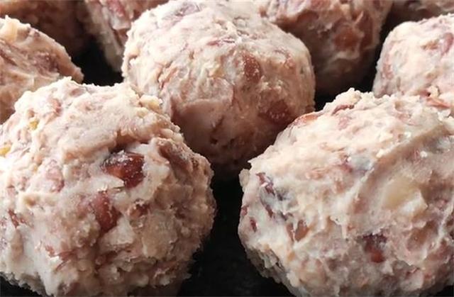 5.用擀面杖把它捣成细腻的豆泥,我们把它搓成大小相同的圆球备用,豆馅一次也可以多做一些,冷冻保存,可以做豆包,也可以烙年饼。