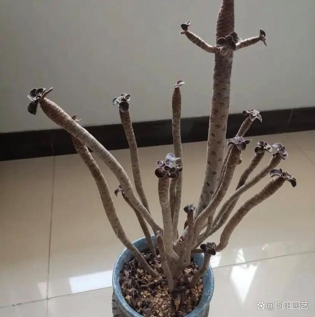 随着叶子开始逐渐脱落,等到叶子快要掉没的时候,这时候就要完全断水了,没有了叶子,法师也就不再生长了,断水养护是最安全的,放置在没有太阳光的地方进行断水养护,这样的法师夏天完全可以安全度夏。