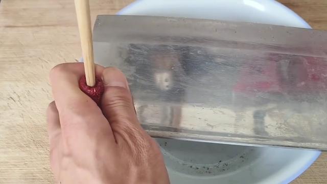 除了这个用途,还有其他实用的方法。比如,红枣大家都熟悉,很多人喜欢用它来泡水、泡酒。但在煮汤或熬粥时,我们需要去掉红枣核。这时,我们可以利用菜刀上的小圆孔。准备一个碗,将菜刀放平,然后把红枣放在圆孔上,用筷子慢慢穿过红枣中心,轻松取出枣核,而且非常干净,不会浪费果肉。
