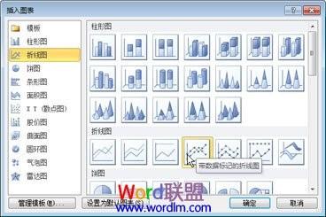 ②在“插入图表”对话框中,单击箭头滚动图表类型。选择所需图表的类型,然后单击“确定”;