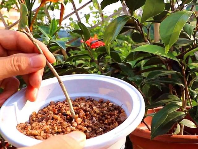 这是很多盆景爱好者都会做的事情,一般都是先种在土里,等它们长势好了,再移栽到花盆里,养起来很容易。 如何用扦插的方式来培育山茶花呢?只要有几个强壮的枝干,就可以在夏季培育出好几株小型的山茶。