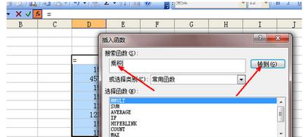 4.在插入函数的页面中,并不能直接找到需要用到的product函数。就在搜索函数空白框中,输入乘积两个字,然后点击转到按钮。