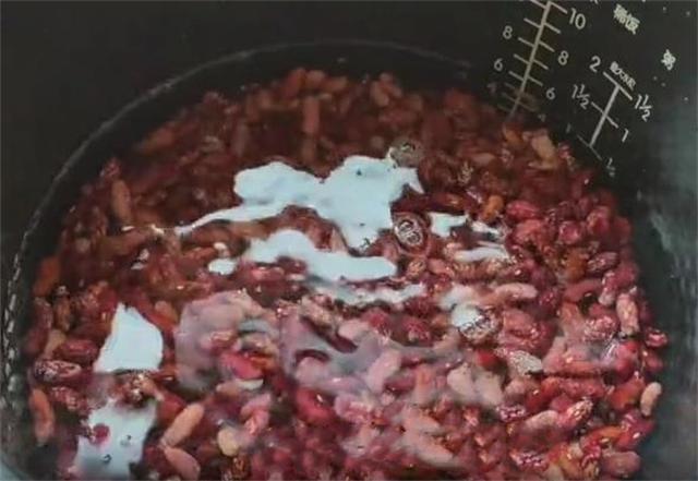 1.今天和大家分享用芸豆和面粉做的美食。首先我们准备800克芸豆洗净,放入两倍的清水浸泡4个小时,然后放入电饭煲按煮饭键,我这个芸豆做的比较多,做好以后可以冻起来,这样用起来更方便。