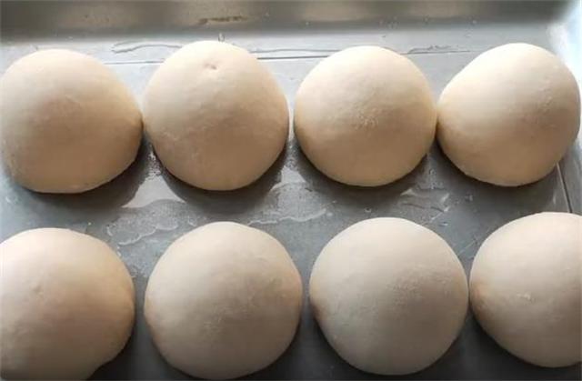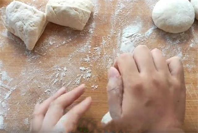 5.发好的面放在案板上揉搓排气,多揉一会儿,排尽里面的空气,这样做出来的馍才会口感更细腻,把它搓成长条,分成8到10份,然后把每一个小面剂像这样向里翻转,揉搓成圆形的小面团备用。