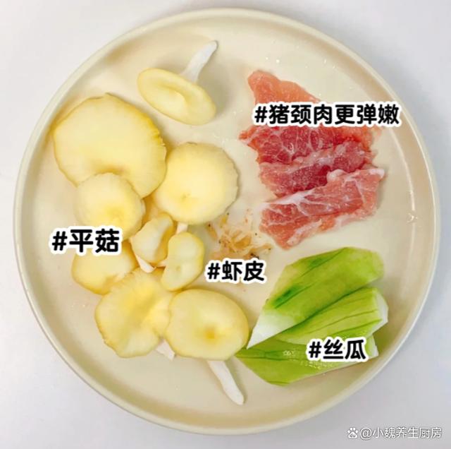 进入六月份以后,气温出现明显的升温,最近几天都是晴朗无云,尤其是中午出现高温32摄氏度,根本不想出门,还没有进入三伏天,已经感受到夏天的热情,炎热的天气经常会出现出汗非常多,身体就会犯困,虚弱无力,感觉没有气色。六月是入夏后炎热的开始,这个时候要调整饮食,平常要少吃辛辣的菜肴,不然容易上火和长痘,建议多喝各种汤品,可以为身体补充营养,还可以起到补水和解暑的效果,让身体非常轻松,疾病远离你。许多人还没有喝过这款丝瓜平菇虾皮肉片汤,不妨收藏起来,学会给家里人露一手。“六月一碗汤,夏季不会慌”,夏天要多喝这汤,补足营养增强免疫。  【丝瓜平菇虾皮肉片汤的具体做法】 挑选一些食材:选购新鲜丝瓜1-2条(丝瓜是夏季最受欢迎的菜瓜之一,要选择外皮非常光滑的,按压起来很有韧性,掐起来有水分,丝瓜吃起来特别清甜,吃法也非常多,可以做成蒸丝瓜,炒丝瓜或丝瓜汤,丝瓜汤保留丝瓜的清甜,多喝能够起到解暑解热的效果,还对女性的皮肤有好处),冷水和开水少许,猪颈肉半斤(家里人多一些,可以多加一些猪肉,也可以用牛肉或里脊肉替代,肉质非常鲜嫩,是这道菜肴的不二选择),少许红薯淀粉,少许食用油,香葱和生姜少许,干虾皮12克左右,新鲜平菇150克(平菇是一种生活里最常见的菌类,菌盖非常白色和灰褐色,两者都非常鲜嫩,有着独特的香味,非常适合煮汤喝),味极鲜半勺,少许食盐,其他调味品。 正确制作步骤: 第一步:提前准备好平菇,丝瓜,猪肉和虾皮等食材,先把香葱洗净切成段,生姜切成细丝,备用。