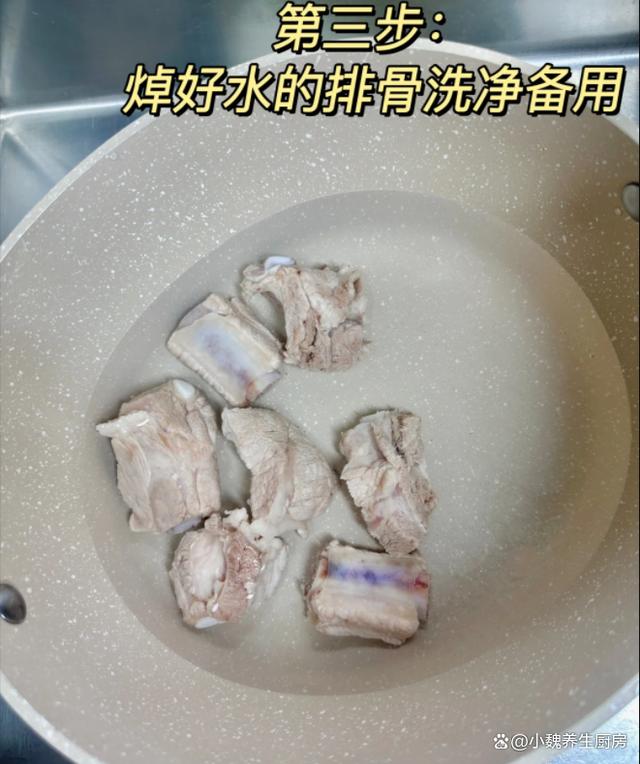 步骤4:提前把猪排骨都剁成块,用清水或盐水浸泡,逼出里面的血水,猪排骨放在锅中,加上适量清水和姜片,放入一些葱结,淋入少许料酒来去腥,把排骨焯烫出来,去掉一层浮沫,捞出备用。 步骤5:准备好炖汤的食材,锅中放入处理好的排骨,放入蜜枣,黄豆,鱿鱼和冷水足量,开大火炖煮半个小时。步骤6:转小火继续煲70分钟,让汤汁慢慢变色,食材都基本上炖熟了,调入白胡椒粉和食盐,有条件可以放入枸杞子,焖煮一小会儿,这款苦瓜黄豆鱿鱼排骨汤就制作完成了。 苦瓜黄豆鱿鱼排骨汤是一款特别好喝的鲜美,选用苦瓜,鱿鱼,黄豆和排骨炖煮而成,每周喝几次,排骨的肉质鲜嫩,营养更容易消化,好喝不上火,清热泻火,排毒解毒,别不懂吃。