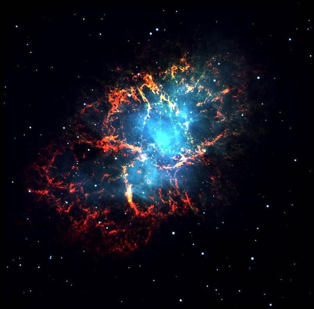 从这里我们可以得知,早晨在天关的方向出现了一颗极为闪亮的大星,甚至连续23天白日也能看见它。这颗天体被命名为天关客星,现在我们知道它距离我们1.3万光年。其当时的亮度超过了除金星以外的所有星辰,而它留下的遗迹正是今日著名的蟹状星云,这次的爆发也没有对地球造成任何影响。