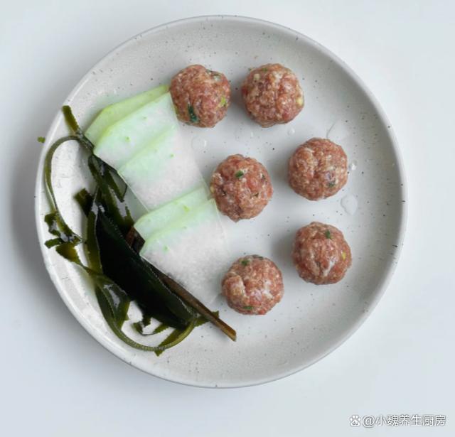 已经迈入到六月份了,炎热的夏天向我们招手,最近还处于夏季的早期,温度一直维持在28摄氏度左右,虽然是大太阳,但是没有达到酷暑阶段,还过一周的时间,真正的考验就要来临了。夏天到了之后,我们的身体新陈代谢加快,抵抗力减弱,食欲会非常差,往往出现厌食的情况,这个时候不知道吃啥,大鱼大肉都觉得没有胃口,这个时候可以换一换口味,给家里人尝尝这款鲜汤——海带冬瓜肉丸汤,选用猪肉,海带,虾皮和冬瓜制作而成,肉丸子非常Q弹,好喝不会腻,学会收藏起来。6月,无论多忙,常给家人喝“这汤”,营养全面,不懂吃怪可惜。  【海带冬瓜肉丸汤的具体做法】 食材清单:选购一大块老冬瓜(冬瓜又叫白瓜,是夏季最受欢迎的菜瓜,外形为椭圆形,瓜肉为白色,口感非常清甜,维生素含量高,可以用来煮汤喝,每天吃都不会长胖,还能起到减脂刮油的目的),选购300克新鲜猪肉里脊(有条件的家庭可以用牛肉替代,肉丸子要剁碎喝调味,掌握好烹饪的火候和技巧),香葱若干根,生姜几片,少许料酒,原味酱油少许,辅食油和食用油少许,鸡精和味精少许,食盐和胡椒粉若干,新鲜海带80克左右,干虾皮15克左右,其他调味品。