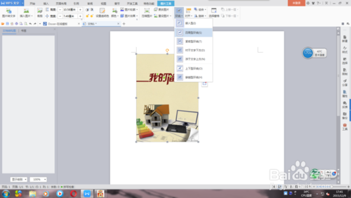 插入图片后点击环绕下拉菜单的四周环绕型,并用鼠标拖动把图片填充到整个一页纸上