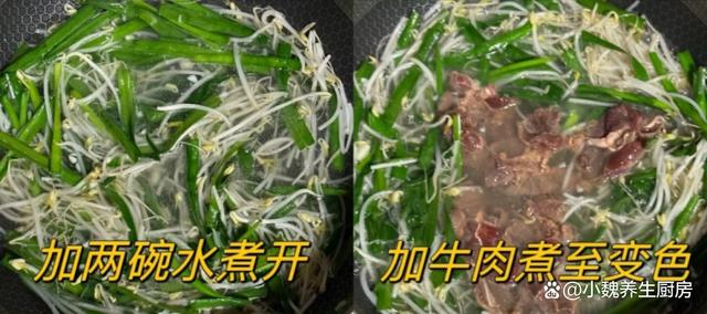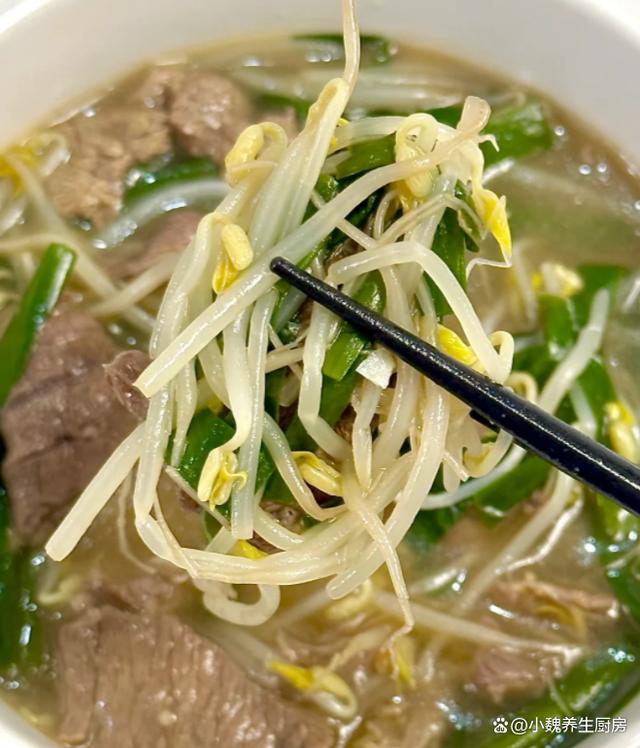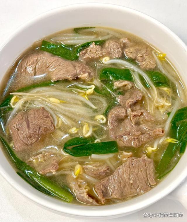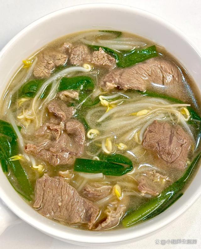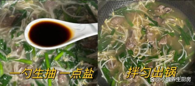 5:将锅底调入少许食用油,放入葱白和蒜末,快速爆炒出香味,倒入豆芽和韭菜,将其炒至变软。 6:加上两碗清水煮开,下入腌制好的牛肉,将其煮至变色,加上一勺生抽和少许食盐,调入半勺胡椒粉,煮20秒左右,关火盛出,这道韭菜豆芽牛肉汤就制作完成了。 韭菜豆芽牛肉汤的制作小贴士:首先,对于食材的挑选,我们需要尽量选择新鲜的牛肉、韭菜和豆芽。新鲜的牛肉肉质鲜嫩,口感滑嫩,而新鲜的韭菜和豆芽则富含营养,口感脆嫩。在处理牛肉时,我们可以选择带有一定肥肉的牛腩部位,这样炖煮出来的汤底会更加鲜美。 再者,调味料的添加也是影响汤品口感的重要因素。我们可以适量添加盐、鸡精等调味料,但要注意不要过量,以免掩盖了食材本身的鲜味。同时,为了增加汤品的口感层次,我们还可以在炖煮过程中加入一些姜片、葱段等提味食材。 总的来说,制作韭菜豆芽牛肉汤需要注重食材的挑选、火候的掌握、调味料的添加以及烹饪时间的把握。只有这样,我们才能制作出一碗营养丰富、口感鲜美的韭菜豆芽牛肉汤。 你们是否学会这款韭菜豆芽牛肉汤的正确做法呢?(文中的配图全部出自网络)