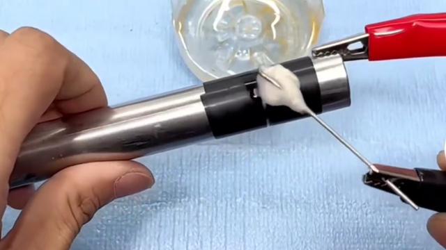 万万没想到,原来用一根铁丝就能轻松切断钢管,不管钢管有多厚。仅凭一根铁丝就能轻松切断钢管,这一方法无论是不锈钢管还是铁管都同样适用,其实用性简直超乎想象。这种神奇的切割技术,只需简单的操作步骤,就能达到令人满意的切割效果。接下来,让我们一起来看看吧。  首先,我们需要确定钢管上需要切割的位置。用电工胶布将这个位置标记出来,并粘贴好,确保标记清晰可见。然后,在标记位置周围再缠绕一圈胶布,以保护钢管表面不被划伤。在缠绕胶布时,需要注意在胶布中间留出一条缝隙,这条缝隙就是我们要切割的地方。切记,缝隙越小,切割出来的效果就越整齐,因此在操作时要尽量保持缝隙的细小。 接下来,我们要准备一个12伏的电源。在插头处接上两个小夹子,一个用于连接外圈的负极,另一个用于连接正极。将负极夹子连接到外圈,并拧紧以确保接触良好,防止发热。正极夹子则暂时不连接,等待后续步骤。现在,我们需要在铁丝上缠绕一些棉花。这一步的目的是为了增加铁丝与盐水的接触面积,提高导电性能。缠绕好棉花后,铁丝的准备工作就完成了。 (www.ws46.com) 接下来,找一个合适的容器,放入适量的盐,然后倒入适量的白开水。用工具搅拌均匀,使盐完全溶解在水中。这样,我们就得到了导电性能良好的盐水溶液。现在,一切准备就绪,我们可以开始切割钢管了。首先,将电源的正极夹在钢管上,确保接触良好。然后,将负极夹子夹住铁丝的一端。接着,用蘸有盐水的铁丝擦拭在之前标记并粘贴胶布的缝隙处。这时,你会看到铁丝开始冒出白色的泡沫,这是由于盐水与电流发生反应产生的现象。请保持持续这个过程大约十多分钟,期间可以适当调整铁丝的位置和角度,以确保切割效果。 随着时间的推移,你会惊讶地发现钢管在不知不觉中已经被自动切断了。这种神奇的切割方法不仅简单,而且效果非常整齐,令人叹为观止。希望大家能够喜欢并掌握这一实用的技巧。最后,也欢迎大家关注我们,每天学习更多简单实用的生活小技巧。