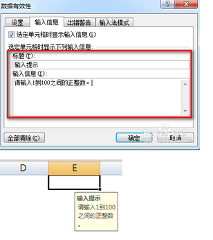 4.第二个选项卡是【输入信息】,在这里设置后可以在录入数据前弹出提示框,提示表格使用者该单元格内容的填写要求。