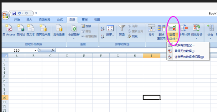 Excel中提供了“数据有效性”这样一个验证功能,可以设定输入的规则,如果输入的数据不符合规则则不允许录入。 1.2003版的有效性设置在【数据】菜单下的【有效性】。 2.2007版以后的数据有效性在功能区【数据】选项卡下的【数据有效性】按钮中。在数据有效性中,除了可以选择限制单元格输入内容外,还可以“圈释/清除无效数据”。