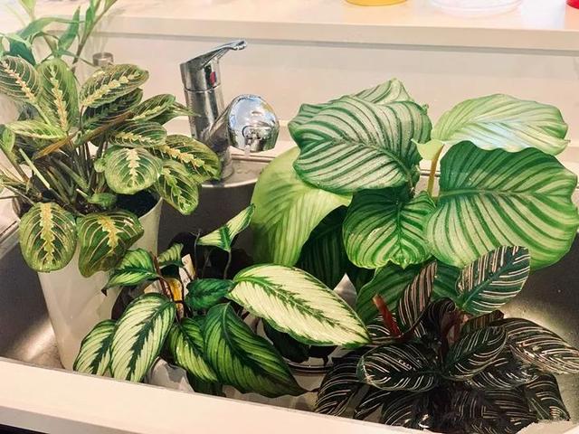 2、竹芋竹芋这是近两年比较火的一种室内观赏绿植,它的品种繁多,每一个品种的花纹都是不一样的,摆放在室内,可以单独成景,也可以把不同品种的竹芋组合摆放在一起,更可以和别的植物花卉搭配起来展示。 不同的竹芋给人的感觉都觉得很清新秀丽,可以搭配不同的装修风格,看上去都特别的衬气质,竹芋的品种有500多种,常见的就有20多种,像天鹅绒竹芋,双线竹芋,飞羽竹芋,还有孔雀竹芋,彩虹竹芋,猫眼竹芋,天使竹芋等等,都是适合室内栽培的,大家可以根据自己的喜好来挑选。 竹芋喜欢在光线明亮的环境中生长,但要避开直射光,也就是说,竹芋可以养殖在客厅,卧室,书房等室内的大部分地方,但要保证冬季的室内温度在10℃以上,不然可能会有冻伤的危险,除此之外,还要保证空气湿度,才能生长壮硕,艳丽。