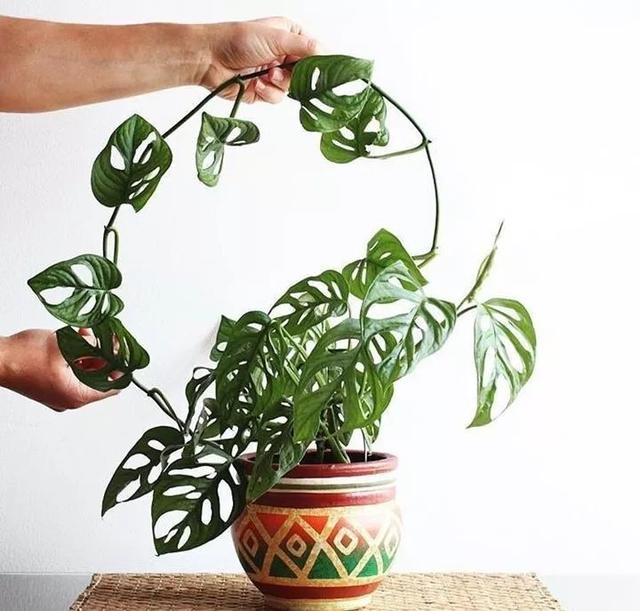 4、仙洞龟背竹一种迷你版的龟背竹,它有个特点,它的叶片上的孔洞不会完全裂开,个人觉得颜值比龟背竹还要高,虽然株型不大,但是可以摆放在除了客厅的任何地方,即使这些地方的光照不是很好,也能生长的油亮翠绿。 虽然它是龟背竹属的,但是说实话,不去考虑叶子的话,它是不是跟绿萝很像,就是从生长形态和习性上,这两种植物也是非常的相似的,换句话说,就是你是怎么去养护绿萝的,就怎么来养护仙洞龟背竹就行了。 它适合生长在二三十度的环境中,有朋友会说,它经常会出现黄叶,其实造成黄叶的原因是因为湿度高了,水分蒸腾不出去,就会有了。只要注意室内的通风环境和浇水频率,就能避免,出现黄叶,剪掉就行了。