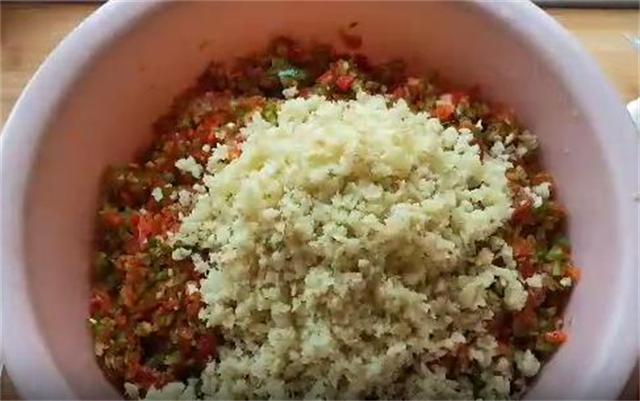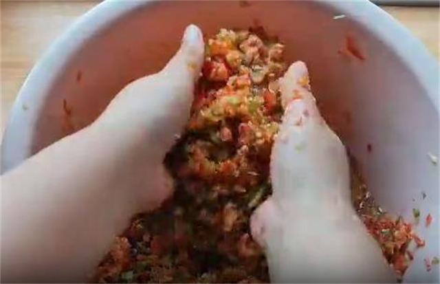 4.把所有搅好的辣椒稍微攥干水分,这样防止腌制的时候水分过多。