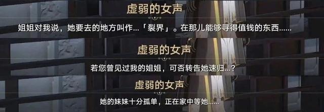 当你对话后,你可以看到小女孩说她姐姐去了“裂界”,还问你是否有看到过她姐姐,如果有消息希望能告诉她,然后你便接受了委托。