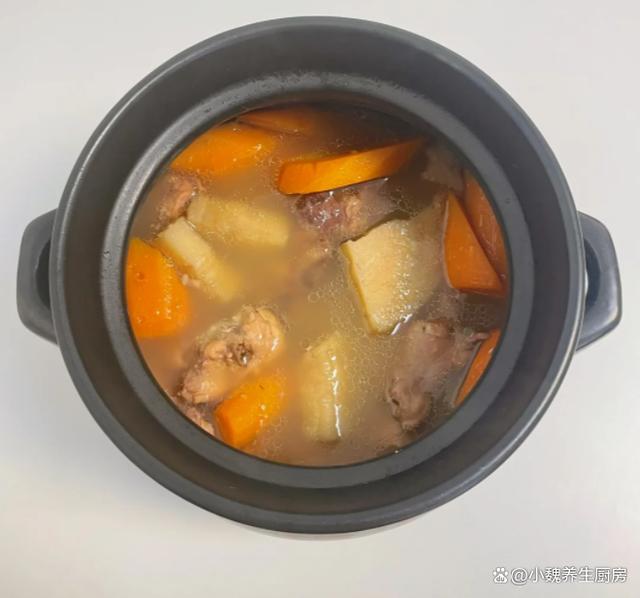 6:大火将其煮开后,撇去一层浮沫,小火煲1.5个小时,让全部食材都煮熟,汤汁慢慢变色,稍微加一些食盐,加上半勺胡椒粉调味,用勺子搅动几下,煮至入味就可以了,这款粉葛胡萝卜芡实薏米骨头汤就完成了。 粉葛胡萝卜芡实薏米骨头汤是一道营养与风味的汤品,既满足了味蕾的享受,又兼顾了身体的健康需求。在繁忙的现代生活中,一碗热腾腾的汤品,仿佛能瞬间拂去一身的疲惫,让人感受到家的温暖和宁静。 来源: www.ws46.com 当这碗汤被端到面前,首先映入眼帘的是那诱人的色泽,品尝这碗汤时,每一口都能感受到丰富的层次感。粉葛的爽滑、胡萝卜的甜美、芡实的细腻以及薏米的软糯,相互交织在一起,形成了一种独特的口感。而骨头熬制的浓郁汤底,更是为这道汤品增添了几分醇厚与鲜美。而薏米则能利湿消肿、清热解毒,帮助赶跑身体的湿气,让身体特别轻松。 网友们,你们是否喝过这款粉葛胡萝卜芡实薏米骨头汤呢?(全文的配图都出自网络)