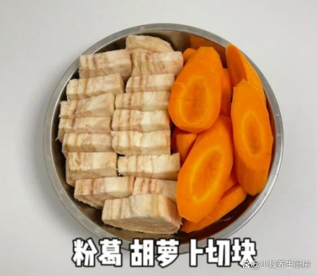 进入6月份以后,已经明显感受到很强的夏日气息,短裤和短袖都穿起来了,晚上都要开空调睡觉,外面非常闷热,房间里非常干湿,让全身都不舒服,身体免疫力低下。到了夏天,湿气也非常重,这个时候需要多喝汤,加强锻炼来增强体魄,平常可以尝尝这款祛湿汤品——粉葛胡萝卜芡实薏米骨头汤,湿气最怕喝这碗汤,隔三差五煮一锅,好处多多,别不懂吃。6月,有钱没钱,常给家人喝这汤,营养美味,祛湿健脾,早食早好。  【粉葛胡萝卜芡实薏米骨头汤的具体做法】 选购一些食材:挑选优质芡实20克,茯苓20克,赤小豆30克(赤小豆是一种红色的豆类,与红豆的食疗价值相同,红豆用来煮粥或炖汤很合适,具有健脾祛湿的效用),无花果若干个,薏米一小把(薏米和红豆是天生一对,都是祛湿的好材料,食用价值很高,尤其是能够赶跑湿气,平常煲汤的时候可以放一些),姜片少许,温水和纯净水少许,新鲜猪骨400克,粉葛200克左右,几个鸡腿,少许料酒,香葱若干根,一丢丢食盐,胡椒粉少许,其他佐料。 详细制作过程: 1:提前准备好猪骨,鸡腿肉,粉葛,胡萝卜和其他食材,将粉葛表面的脏东西洗干净,用刀削掉外皮,反复清洗干净,切成厚度相同的片,放在一边备用。 2:将几根胡萝卜都清洗干净,将萝卜皮去掉,洗净切成滚刀块,生姜切成若干片状,几个无花果提前泡发好,备用。 3:将猪骨提前剁成若干块,鸡腿肉用清水洗净,锅中加上少许冷水,放入猪骨和鸡腿肉,加上一些姜片和葱段,加上少许料酒,将其去腥处理。4:将茯苓用冷水泡一泡,红豆和薏米先洗干净,分别浸泡几个小时,也可以冷冻一晚上,这样更容易煮熟,准备好几种食材,开始制作这道粉葛胡萝卜芡实薏米骨头汤。 5:提前准备好炖锅,锅中放入猪骨和鸡腿肉,丢入一些姜片,加上粉葛,薏米,茯苓,赤小豆,无花果和纯净水足量。