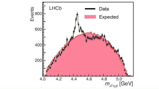 这种新发现的五夸克粒子由两个上夸克、一个下夸克、一个粲夸克和一个反粲夸克组成。它的质量约为4.38 GeV/c²,相当于约四个质子的质量。它被命名为Pc(4450)。科学家们是通过分析Λb重子衰变成三种其他粒子时产生的数据来发现这种新粒子的 。他们利用了探测器的高灵敏度和高分辨率,以及大量的数据样本,来排除其他可能的解释,并确定了这种新粒子的存在。