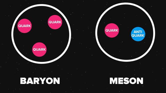 夸克是一种基本粒子,也就是构成物质的最基本的微观组成部分。它们有很多味,目前已知有6种:上、下、奇、粲、顶、底。不同味的夸克有不同的质量和电荷。例如,上夸克的质量约为2.3MeV/c²,电荷为 2/3e;下夸克的质量约为4.8MeV/c²,电荷为-1/3e。 除了质量和电荷外,夸克还有另外一种性质,叫做色荷。色荷是一种类似于电荷的物理量,但它有三种取值:红、绿、蓝。反夸克则有三种相反的色荷:反红、反绿、反蓝。色荷决定了夸克之间的强相互作用力,也就是将它们紧密地结合在一起的力。 由于色荷的存在,单个的夸克或反夸克不能自由存在,它们必须和其他夸克或反夸克组合在一起,形成一种无色的组合态,才能稳定存在。这种现象叫做色禁闭。 目前已知有两种夸克的组合方式:三夸克态和夸克-反夸克态。三夸克态是由三个不同色荷的夸克组成的,它们的色荷相加为零,形成无色的粒子。这种粒子叫做重子,其中最常见的就是质子和中子。质子是由两个上夸克和一个下夸克组成的,电荷为 1e。中子是由一个上夸克和两个下夸克组成的,电荷为0。质子和中子构成了原子核,进而构成了原子和分子。