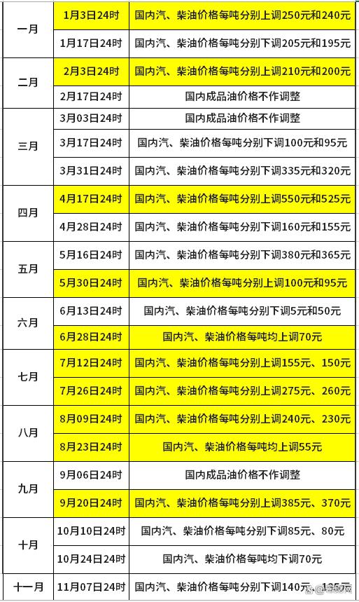 国内油价还会回到5元时代吗?根据国家发改委发布的公告,国内汽油、柴油价格从11月7日24时起,每吨分别下调140元和135元。这已是过去一段时间国内油价连续三次下调。可尽管如此,年内的油价累计仍然是上涨的,涨幅达到了760元/吨。 下方为国内油价的调整情况: