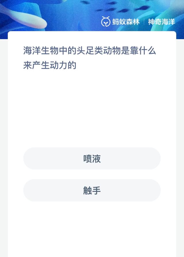 海洋生物中的头足类动物是靠什么来产生动力的? 正确答案:喷液
