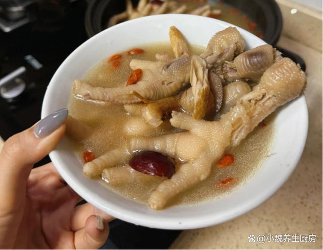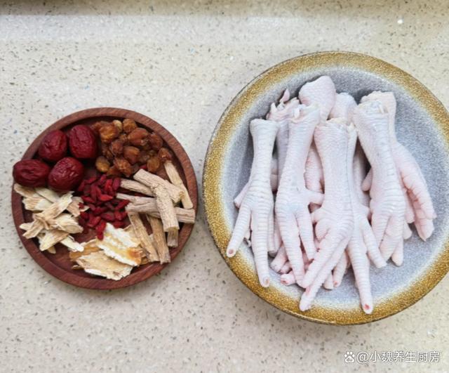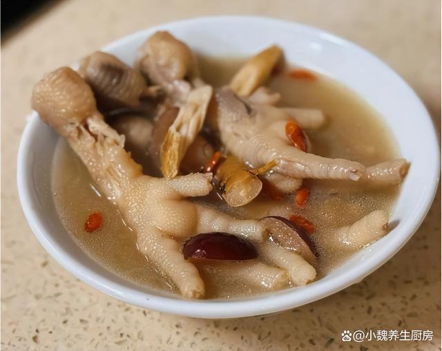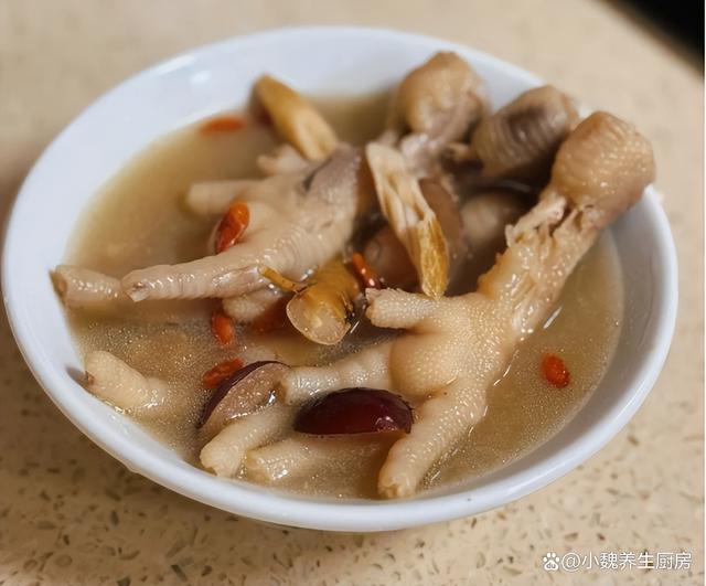 一转眼就到了5月份的月末,由于现在气温非常高,温度一直在攀升,导致很多人身体虚弱无力,有时候睡眠还很差,气色会非常差,女性容易出现贫血的情况。人到了中年,一定要照顾好自己,平常要注意进补,少吃太油腻的食物,多喝各种鲜美的汤品,比如说鸡汤,排骨汤或鸡脚汤。今天准备用鸡脚和几种食材煲一锅,汤品特别鲜美,吃起来特别Q弹,喝起来很舒坦,内行人经常喝此汤。很多人第一次听说这款党参当归桂圆鸡脚汤,到底应该如何制作呢?不如跟着小编学起来吧。贫血最怕喝“这汤”,夏季要常喝它,补血安神,补足营养增强免疫。  【党参当归桂圆鸡脚汤的烹饪技巧】 准备一些食材:选购若干个红枣(红枣是一种补血的食材,平常可以囤积一些,每次煲汤的时候丢入一些,补气活血,身体抵抗力增强),干桂圆肉25克左右,黄芪和党参30克左右,当归30克左右,少许枸杞子,生姜一大块,冷水少许,温水若干,冷冻鸡脚400克左右(鸡脚又名凤爪,是一种很受欢迎的食材,吃起来口感非常Q弹,我们家平常用来卤鸡爪或煲汤,鸡爪吃起来很有韧性,汤品非常滋补,对身体好处多多),几勺料酒,食盐若干,大葱半根,其他。 详细制作顺序: 1:提前选购好党参,当归,黄芪,桂圆肉,红枣和鸡脚等食材,先把大红枣都洗干净,用工具取出里面的内核,清洗掉表面灰尘,放在一边备用。 (www.ws46.coM) 2:将干桂圆放在碗中,加上适量温水泡发变软,里面的果核要去掉,洗净控干水分,生姜全部去皮切片。3:将黄芪,党参和当归洗干净,大葱切成小段,枸杞子也要清洗干净,将鸡脚提前冷水解冻开。 4:用剪刀把鸡脚处理干净,用清水淘洗干净,用冷水浸泡一会儿,鸡脚倒入锅中,加上少许料酒,放入姜片和葱段,盖上锅盖煮一会儿,把鸡脚焯水一会儿,舀掉一层浮沫,最后控干水分即可。
