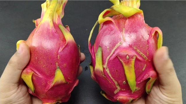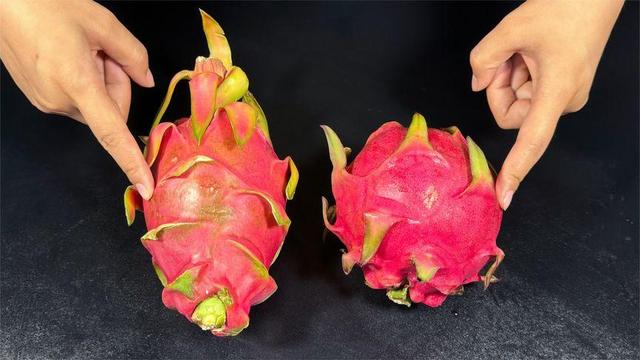通常来说,鳞片间距较宽的一面意味着火龙果更加成熟,甜度也更高。这是因为火龙果在生长过程中,像一个花苞逐渐展开。随着生长周期的推进,花苞上的花瓣吸收养分后逐渐变成了现在的果皮上的叶片。而火龙果是向阳生长的水果,受到的光照时间长,所以叶片之间的距离就会越宽,果实也会更加饱满。 二、辨别叶片,判断采摘时间。除了观察鳞片,我们还要注意火龙果上的叶片。如果叶片颜色发青,且叶子又尖又长,那么这种火龙果可能是过早采摘的,成熟度不高,口感自然也会受影响。因此,在挑选火龙果时,我们要仔细辨别叶片的颜色和形状。叶片颜色鲜绿、形状饱满的火龙果通常更为新鲜和成熟。