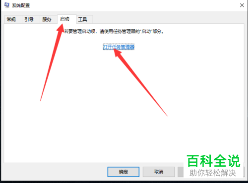 3. 然后,我们打开了系统配置页面,点击菜单栏的“启动”,再双击“打开任务管理器”。